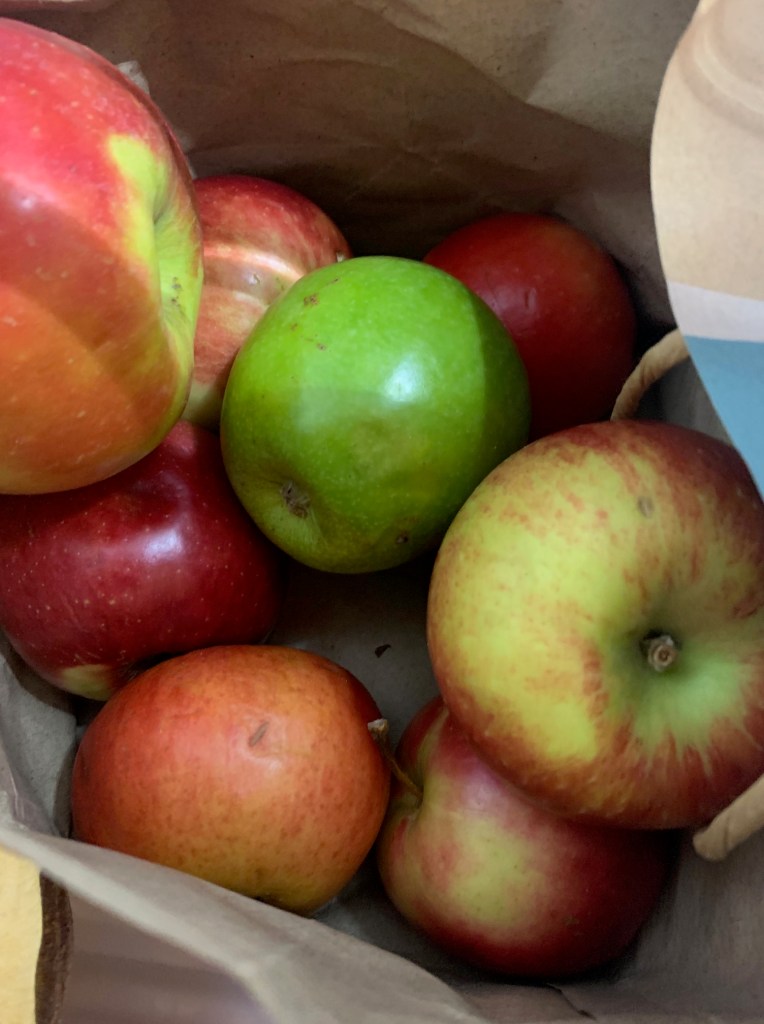 “Nå kommer han Helge med eplene”, sa mamma og litt etter stod han på døra med en kasse epler i armene sine. Inn gjennom yttergangen og så inn i gangen og så inn på kjøkkenet før pappa senere på ettermiddagen bar kassen ned i spiskammerset. Men før de ble båret ned ble lokket tatt av. En konsentrert duft av røde epler og papp fylte hele kjøkkenet. Vi fikk ta ett hver. Kassen var ment å vare hele jula.